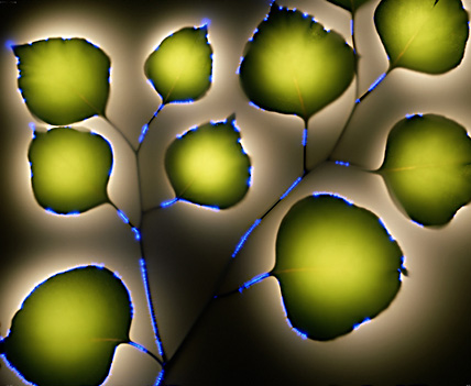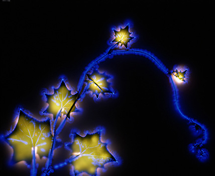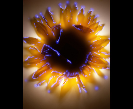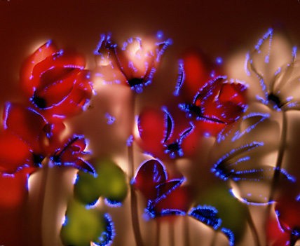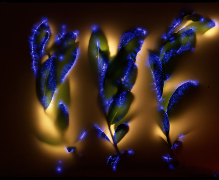"Trabalho de foto Kirlian realizado com 4 essências vibracionais FDDE. As essências 27, 30, 33 e 38.
